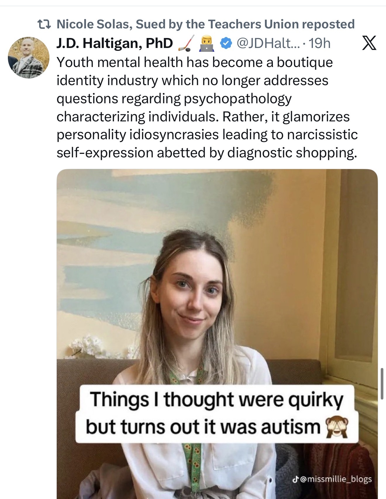 Beware the sorts of online actors such as the woman in the picture. Instagram is dominated by these sorts of internet “health coaches”, celebrating understandable, and fixable personality disorders as part of their identity. Very unhelpful and very unhealthy.